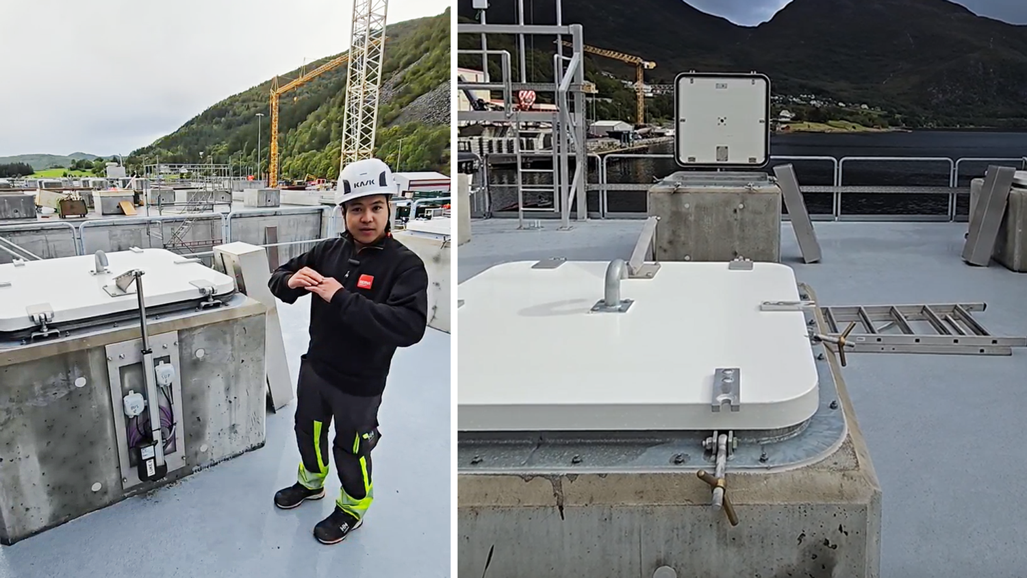 På toppen av siloene er det ofte trangt, og folk skal kunne ferdes trygt selv når lukene kjøres. Derfor er klemringsovervåkning bygget inn i løsningen.